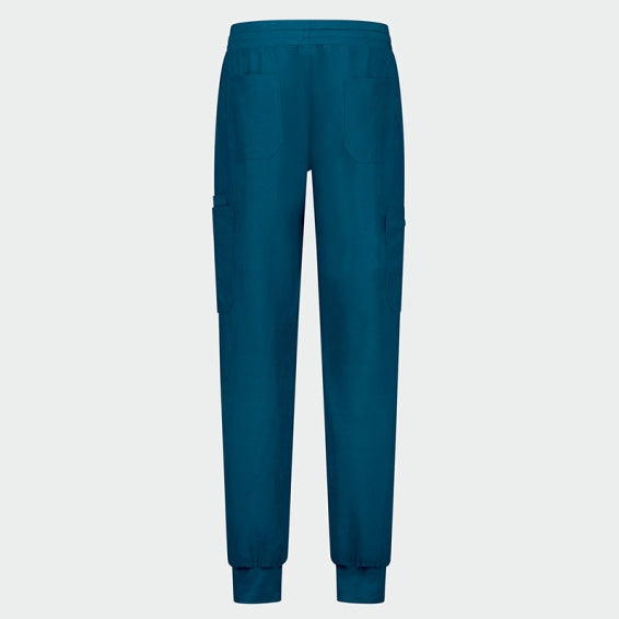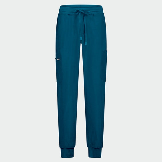 Pantaloni medicali: Design modern, tip jogger, Elastic lat in talie si snururi de strangere, Doua buzunare frontale, dintre care unul dublu, Doua buzunare spate si trei buzunare laterale, dintre care unul cu fermoar